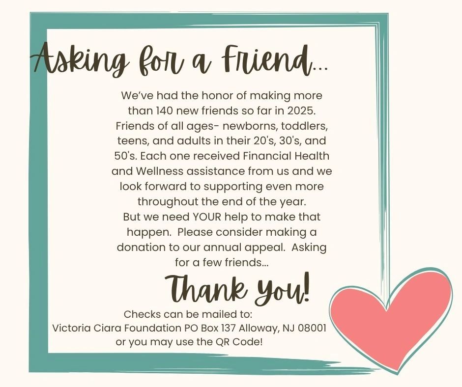 If you prefer to mail a check, please make it out to The Victoria Ciara Foundation and mail it to